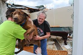 Americano que teve casa destruída por tempestade, se emociona ao encontrar sua cadela viva.